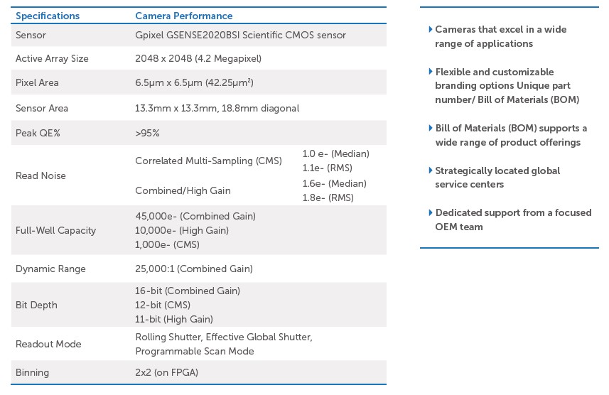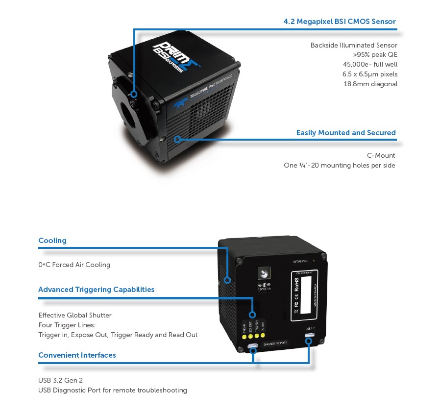 Prime BSI Exprees是一款经过优化设计的紧凑型科学级SCMOS相机,它诠释了灵敏度和分辨率的的完美组合,接近完美的95%量子效率,可以拾取极其微弱的近红外信号。