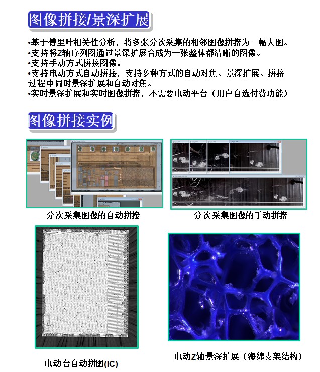 •支持电动方式自动拼接,支持多种方式的自动对焦、景深扩展、拼接过程中同时