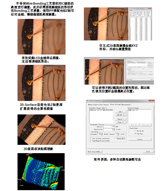 5. IMC测量软件 6. 电动拼图 7. 3D表面重建 8. 金线弧高测量